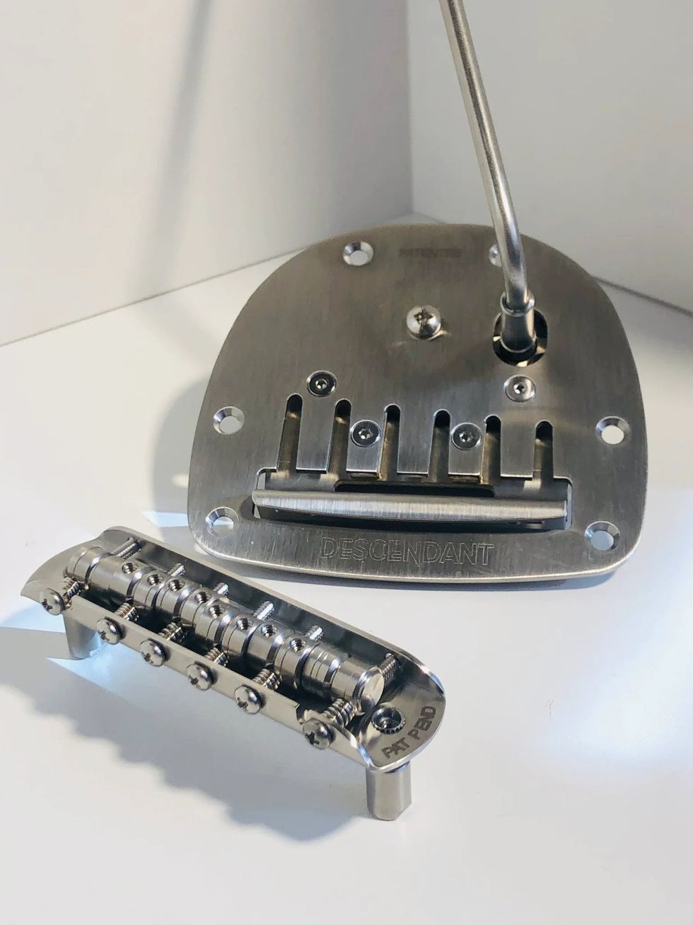 A sleek drop-in replacement for S-style guitars, this two-point vibrato is designed for both descending and ascending motion without having to route your beloved instrument.