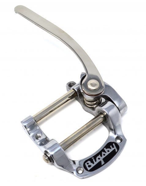 The ultimate old-school whammy mounts to any flat-top solidbody with just four screws and is available in polished aluminum and gold.