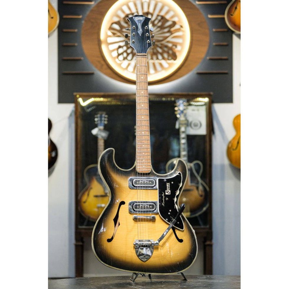 It’s interesting that, while one side of the vintage market is pushing up prices for lesser-ran Fender and Gibson models, or even off-brand copies, there’s so little interest in these premium guitars that were built with plenty of their own flair. If you dare to be different, keep your eye out for a Burns Vibra Slim like this.