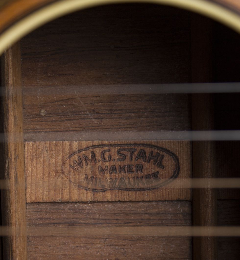 This guitar was made for William C. Stahl, and has a “Wm. C. Stahl, Maker, Milwaukee” hot stamp on the back strip.