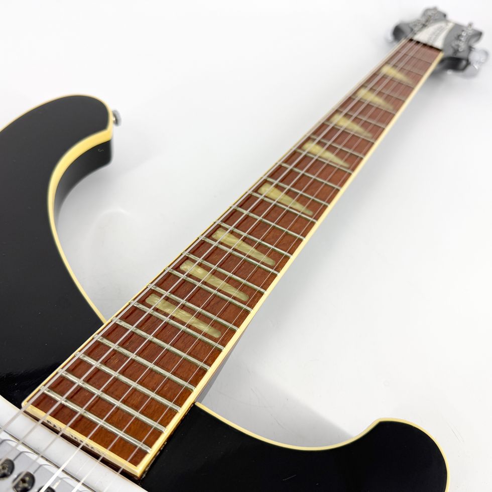 Long before the fanned fret phenomenon caught on in the modern, progressive guitar landscape, Rickenbacker had been toying around with the slant-fret concept. Originally available from 1970 forward as a custom order on other models, slant frets were all but standard on the 481 (only a small minority of straight-fret 481s were built).