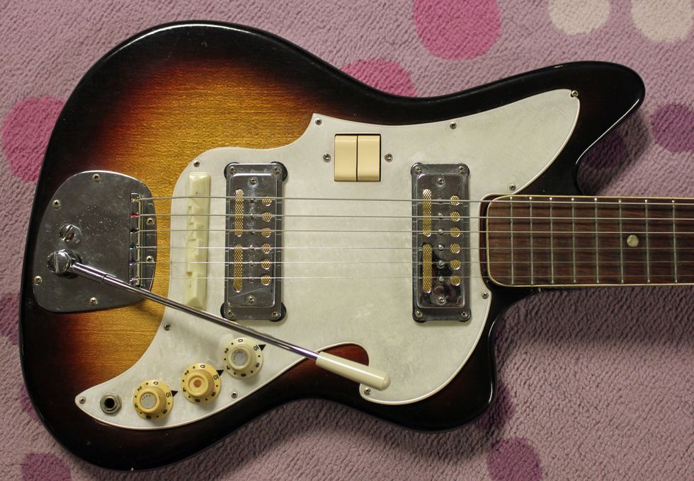 Appearing right around 1965, this particular guitar was called the ZES-70T in company literature. It sported a robust neck (no adjustable truss rod), a non-adjustable plastic bridge, a tremolo, and two non-adjustable pickups (I used little rubber washers to raise the bridge unit on mine). The electronics layout had two tone knobs, one volume, and two pickup switches. But the true beauty of this guitar were those gold-foil pickups. There were a lot of variations on the gold-foil designs (which were copied from American DeArmond pickups), but the ones in this Audition were special. Played through a nice old Fender amp, they’re okay. But if you plug this guitar into an old Ampeg or Gibson amp, then you’re getting somewhere. An old Valco or Danelectro amp would put you right in the center of thrash city! The sound I always liked with this Audition was to use an amp-switching pedal and use two amps: one for loudness and semi-clean tones and a smaller amp that would be dimed for distortion. You don’t even need effects pedals.