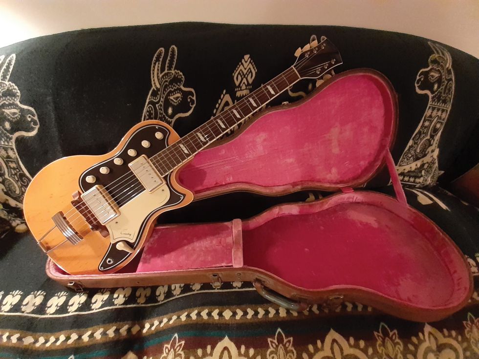 The garage sale was less than a mile from where I lived. I grabbed some cash and was there in record time. (Driving sensibly, of course.) I saw an open guitar case, and in that case was truly something to behold, a “National treasure” of sorts. The name badge on the headstock was missing but the glue residue spelled out all I needed to know. It was a real National.