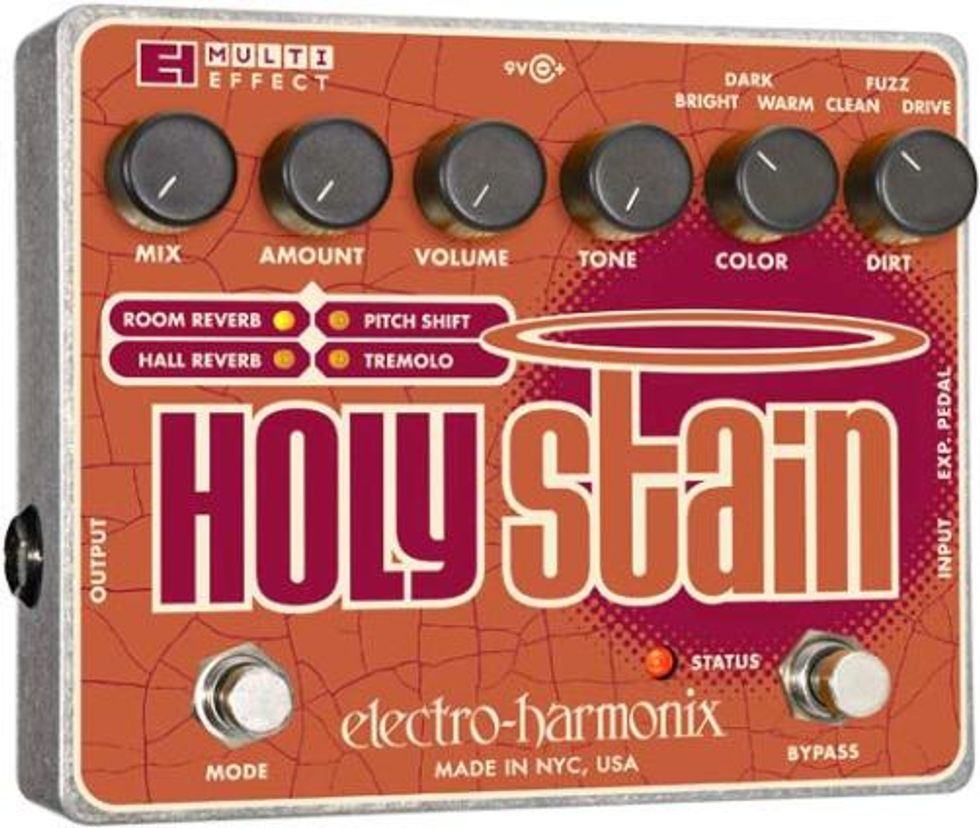 The Holy Stain pedal is the first multi-effects unit from EH. As expected from a company that has forged a sonic path in rock-n-roll history, the Holy Stain offers up a wide variety of distortion tones and effects.