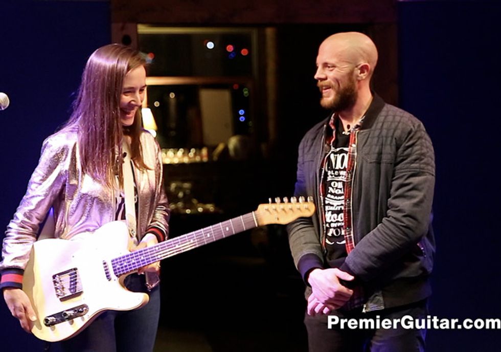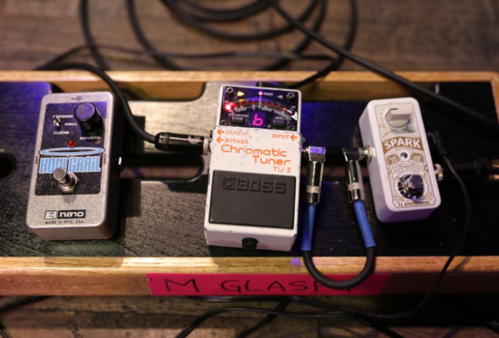 Seen here is her minimal board with only two stomps—aside from the Boss TU-2 Tuner—but she only uses the TC Electronic Spark Mini Booster (for “Love Like This” and also on a cover of a Björk song called “Who Is It”) as she is currently vibing with the Deluxe’s reverb more so than the EHX Holy Grail Nano.
