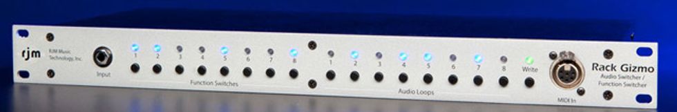 San Diego, CA (November 3, 2011) -- The Rack Gizmo is the new flagship switching product of the RJM Music line. For years now, professional and amateur players alike have been relying on RJM Music Technology effect switching systems to be the core of their guitar rigs, helping them integrate all of their effects and amps into a reliable, easy to use system. The Rack Gizmo is the latest generation, building on the proven designs of the RG-16 and Effect Gizmo products and adding new features and improved performance.