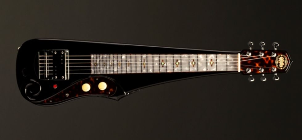 Using high quality components and construction techniques, this isn't your grandpas steel guitar. With nod to some of the vintage designs, the Araya is new and refreshing. Featuring a carved maple body and Italian celluloid adornments.