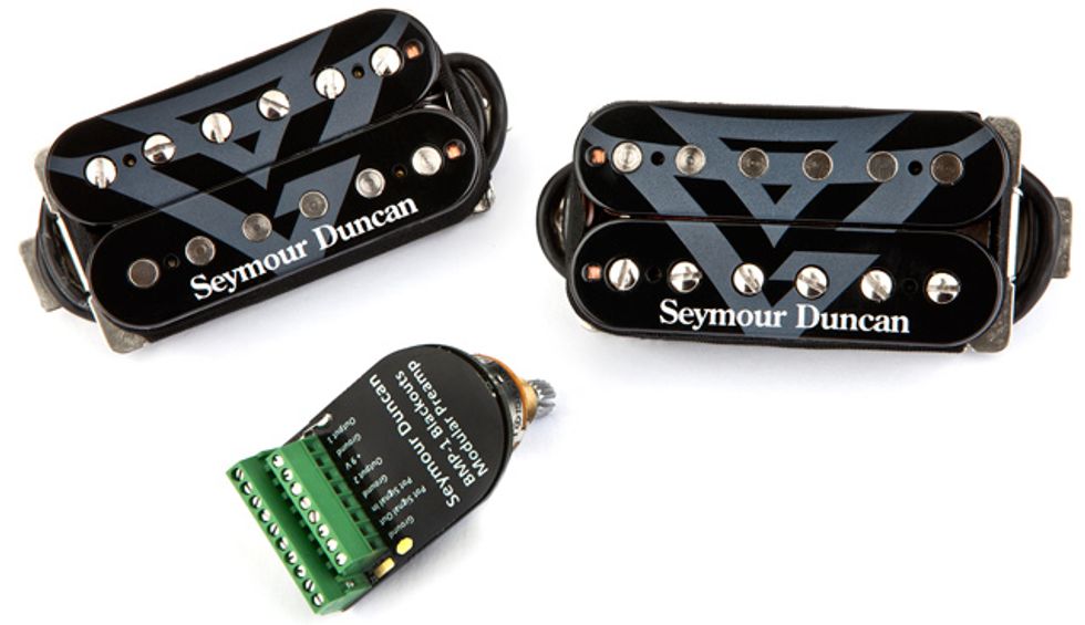 The Gus G. FIRE Blackouts System includes a pair of traditional-looking humbucking pickups and a low-noise, high-output dual active preamp. Seymour Duncan says the system is designed so hard rock and metal guitarists can get the explosive power they demand without sacrificing the expressive, hair-trigger response of a great passive pickup, adding, "It's the most organic-sounding active pickup system ever."