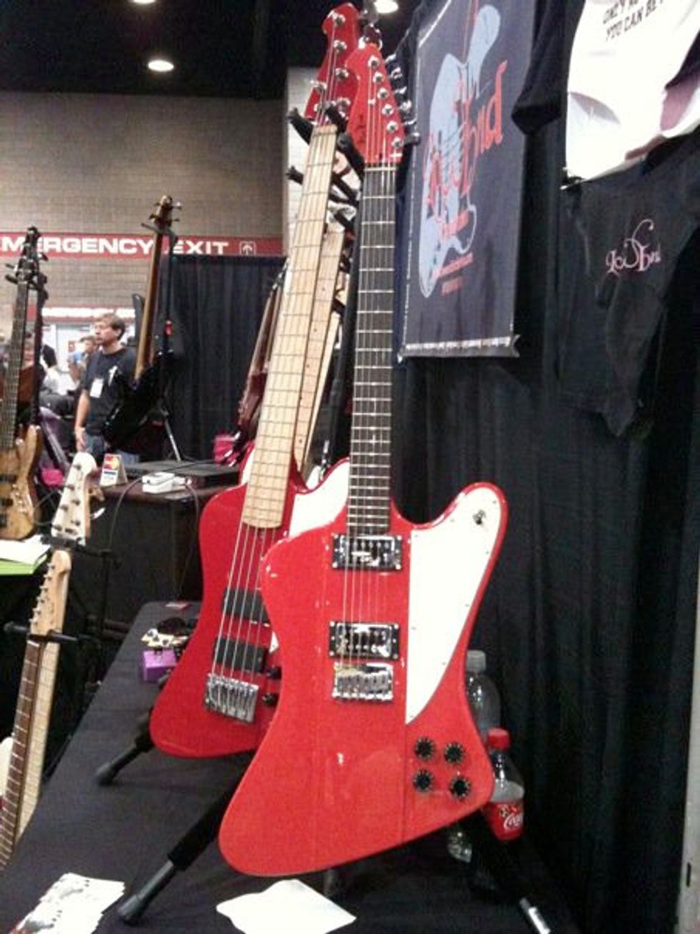 Murfreesboro, Tennessee-based Low End specializes in bass clones, but showcased their new Fbird guitar. The US-made Fbirdāin Fiesta Redāfeatures custom Kent Armstrong pickups and retails for $2899.