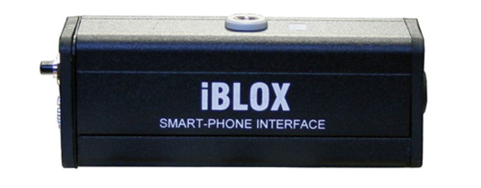 i-BLOX Smart Phone Interface at Winter NAMM 2011. The i-BLOX serves as an audio interface that connects an instrument to an iPhone amplifier as well as mobile recording applications.