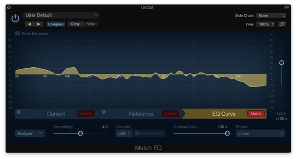 But you can get a similar effect with regular old EQ and compression plug-ins. I ran the above recordings through Logic’s Match EQ plug-in, which compared the two versions. The tape plug-in added the EQ curve in Fig. 2.