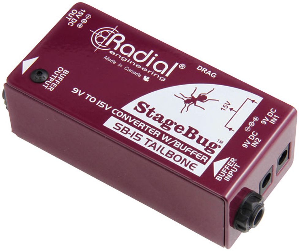 Designed to drive multiple pedals and long cable runs without added noise, this buffer also allows a player to combine two 9V outputs from a power brick and convert them to 15V DC.