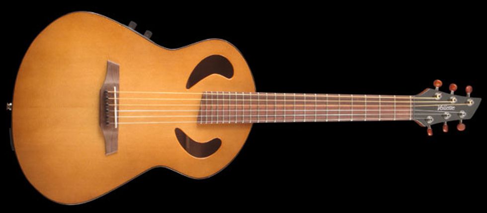 Woodstock, NY (May 7, 2011) -- Known for fresh new ideas with inspiring musical results, Veillette Guitars has taken a very melodious look backward with the new Terz 6, a 22 inch scale acoustic 6-string that harks to the early 19th century, and brings all the intriguing hybrid tones of the incredibly successful Terz 12 (Terzilla). Combining elements of tenor guitars, bouzoukis, mandocellos, and the ever-popular Veillette Gryphon, the unique range, punch, and sweetness of the Terz tuning are now available to every adventurous guitar player.