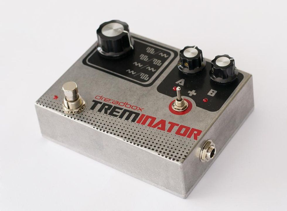 TREMINATOR may look like a tremolo effect pedal, but it is a synthesizer in heart. With a very wide frequency range LFO, multiple wave shaping (including some very unique shapes, like staircase and bit crushed random generator), the tremolo effect is getting to a new dimension. There are more tricks in its sleeves, as it can be used as an Attack Decay pedal. Additionally, it is equipped with an LFO delay/fade function and it has a tap tempo. Last but not least, it can also control other gear with CV inputs/outputs or be controlled- making this a great partner for the rest of our pedal line.