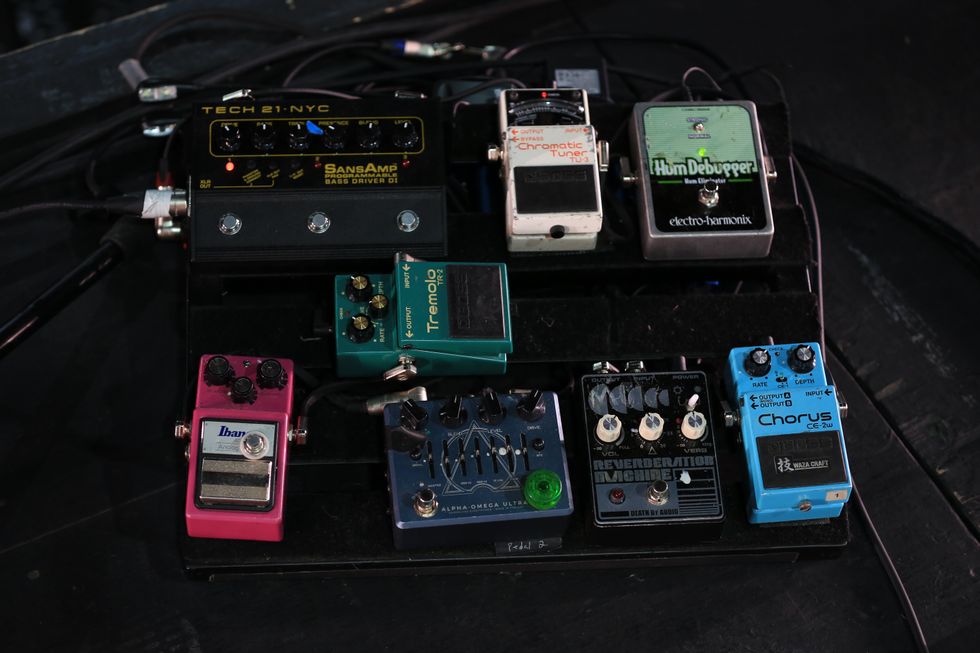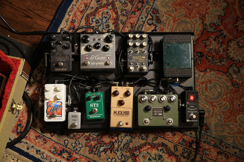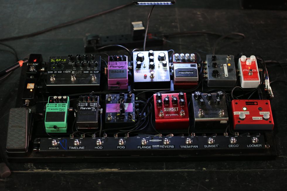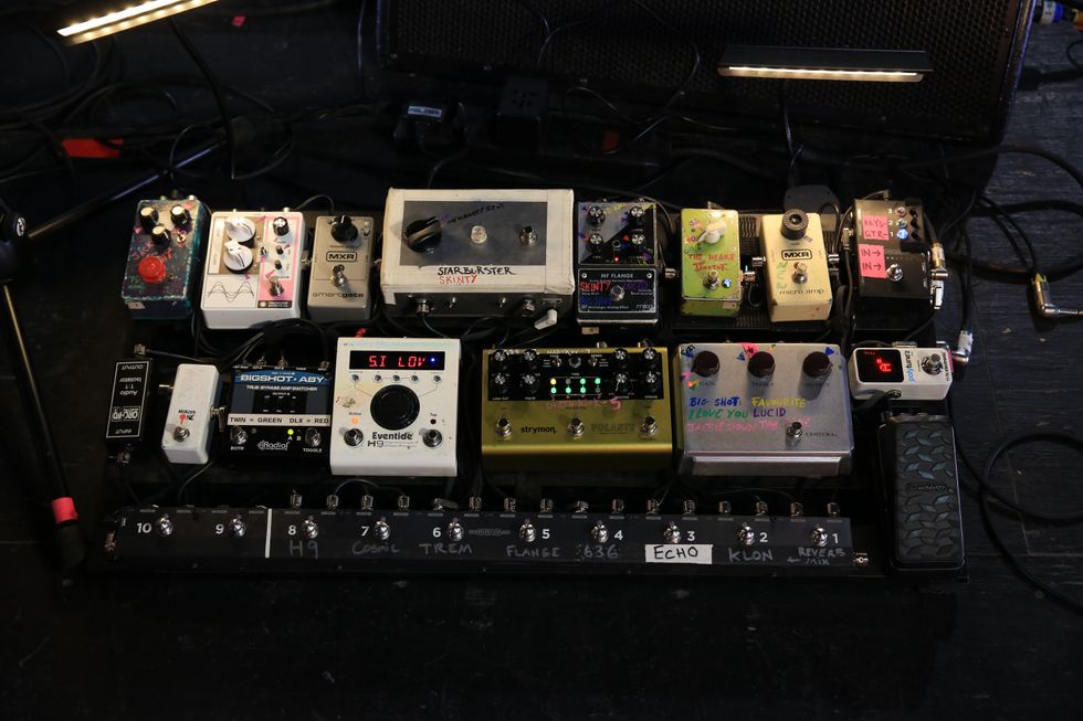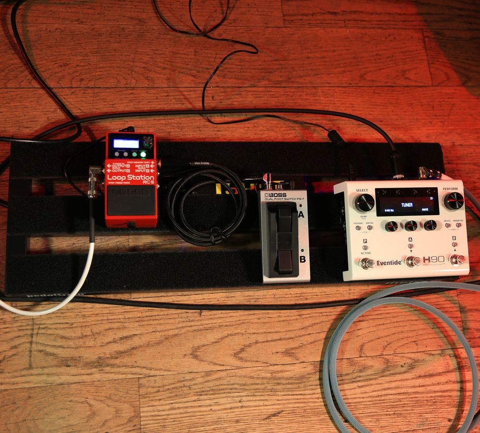 Ghent’s tone is really about the guitar and the amp, but he does have a modest pedalboard that includes an Eventide H90 and a Boss RC-5 Loop Station. He uses Lava Cable to connect the dots.
