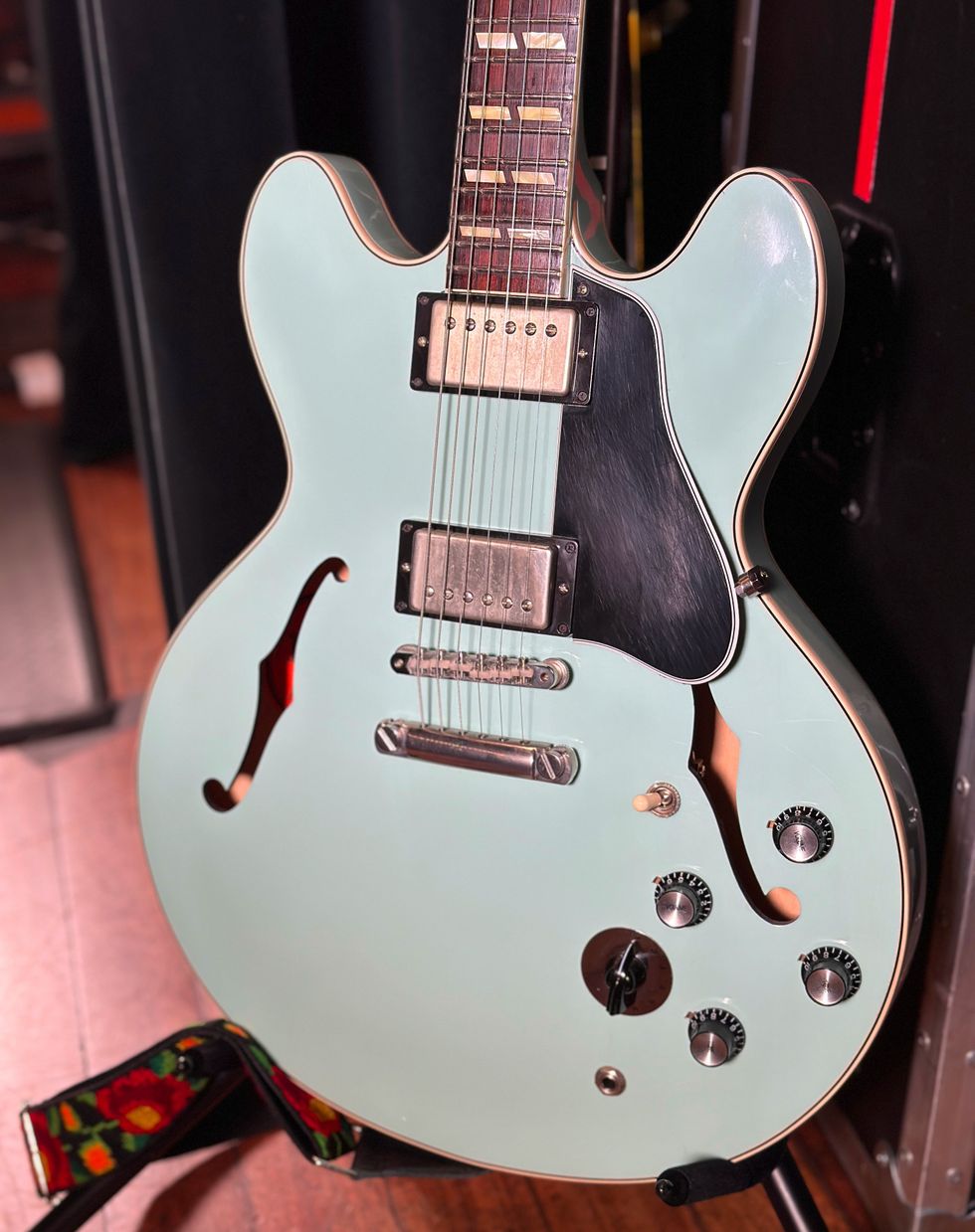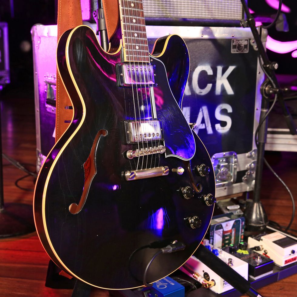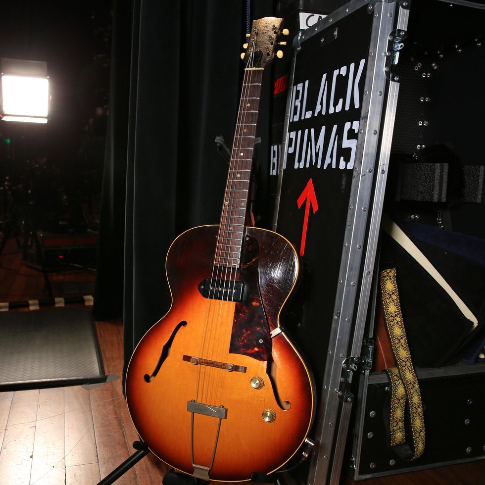 Black Pumas’ singer/guitarist Eric Burton started his career busking in Santa Monica. He’s always accompanied himself with an acoustic guitar, but as the Black Pumas formed and took off, he needed something louder, which pushed him into the hollowbody and semi-hollowbody realm. His main collaborator has been this 1959 ES-125 that is all original and still has its purring P-90. He uses it for the Pumas’ songs “Colors,” “Stay Gold,” “Fast Car,” and “Tomorrow.” Burton’s guitars take D’Addario NYXL1149 Nickel Wounds (.011 –.049).