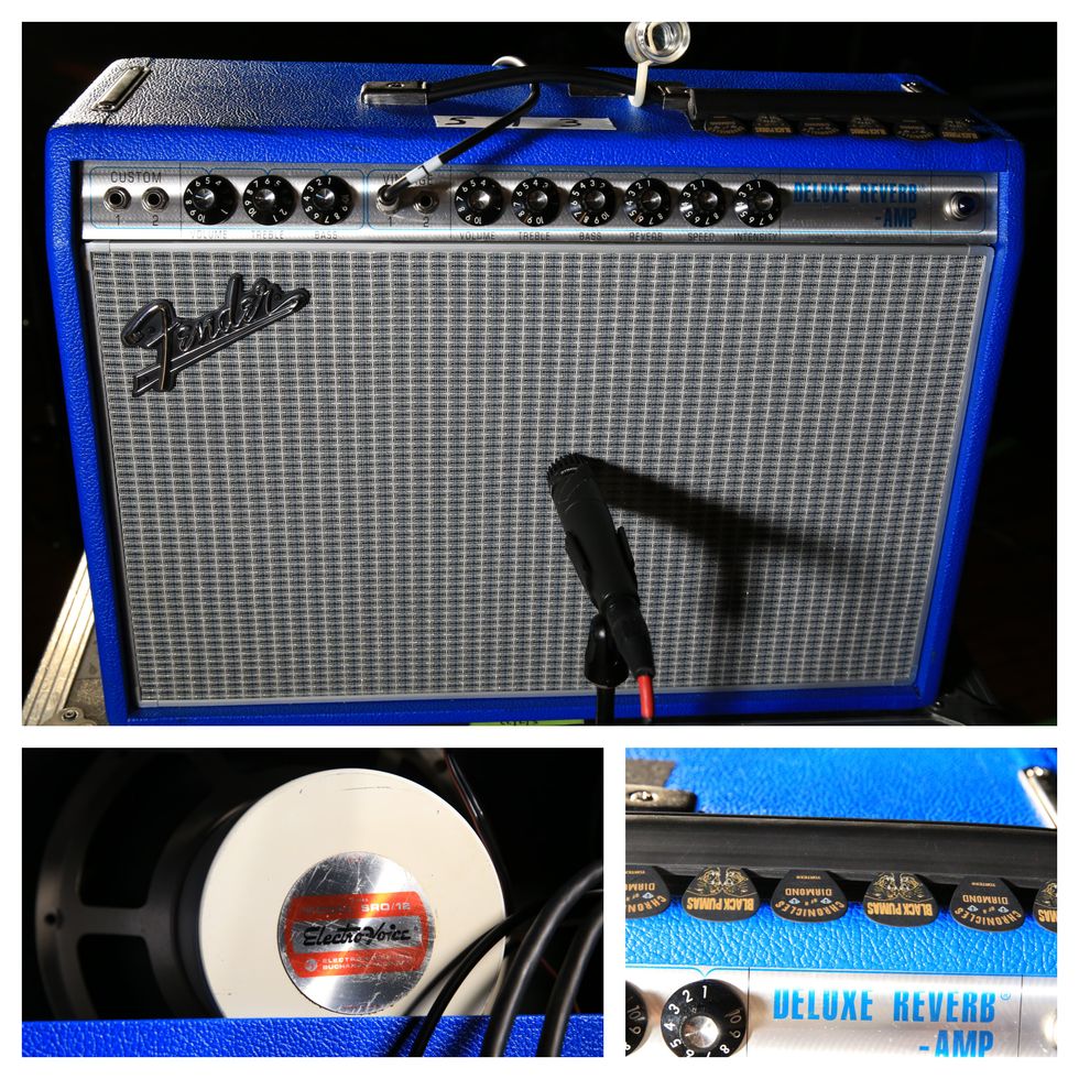 Adrian adores Fender amps. His Austin-based recording studio is loaded with noteworthy models from the company’s golden years, yet he proudly tours with a Fender Limited Edition Electric Blue ’68 Custom Deluxe Reverb reissue. (It’s worth stating that a proper ’72 silver-panel Deluxe Reverb was in a road case.) The bright tolex covers an otherwise standard circuit, however the stock combo did have a Celestion Creamback in it. But when Quesada’s tech Bryan Wilkinson found and landed the score for his boss off Craigslist, it had been modded with an Electro Voice SRO Alnico 12" speaker. Adrian loved how it sounded, so it stayed in, and he’s been using the combo on tour ever since.