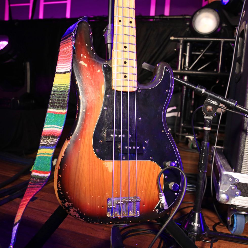 Black Pumas bassist Brendan Bond had the good fortune to hang out at the Wilco Loft in the Irving Park neighborhood of Chicago. He quickly bonded with an old P bass that preoccupied most of his time in the space. Up to that point, his fingers have mostly danced around newer basses, so the allure of vintage gear never tempted him. That all instantly changed (“It was like I was playing a different instrument,” he commented), and when he landed back in Austin, Texas, he took a car right to Austin Vintage Guitars, where he landed this 1974 Fender Precision bass. It’s been his main sweetheart ever since. He puts D’Addario ECB81 Chromes Flatwounds (.045 –.100) on it, and always plays with his fingers in Black Pumas.