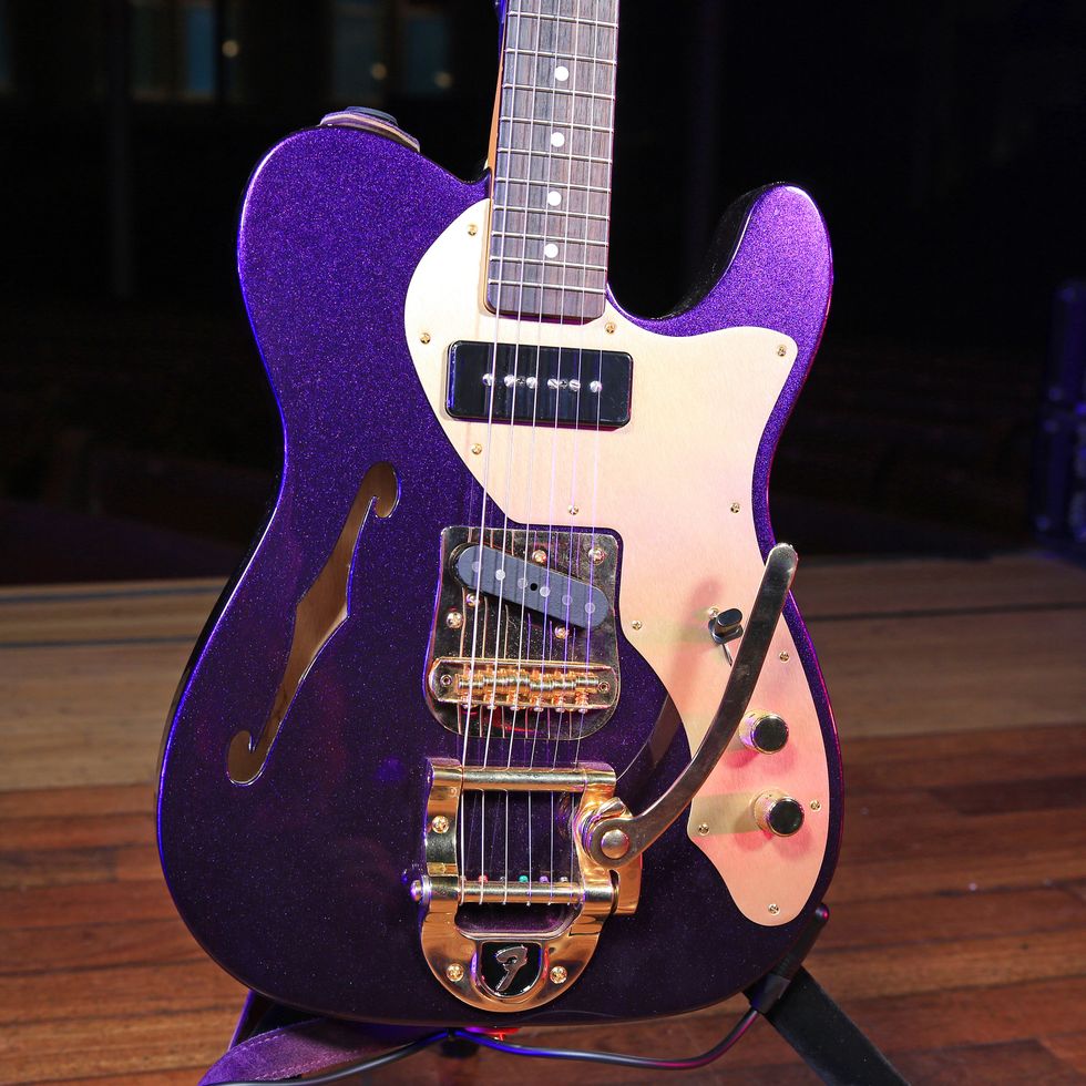 This prototype was born from conversations with the Fender Custom Shop, who took inspiration from Eric’s connection with hollow and semi-hollow instruments. The Telecaster Thinline has a few special appointments, including a sparkle-purple finish offset with gold hardware and an anodized gold pickguard, conjuring thoughts of the president of Paisley Park. The other interesting bit is the hot P-90 in the neck position.
