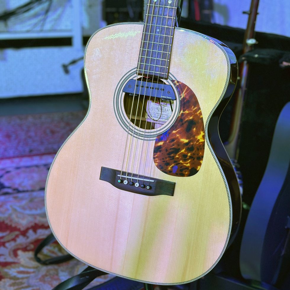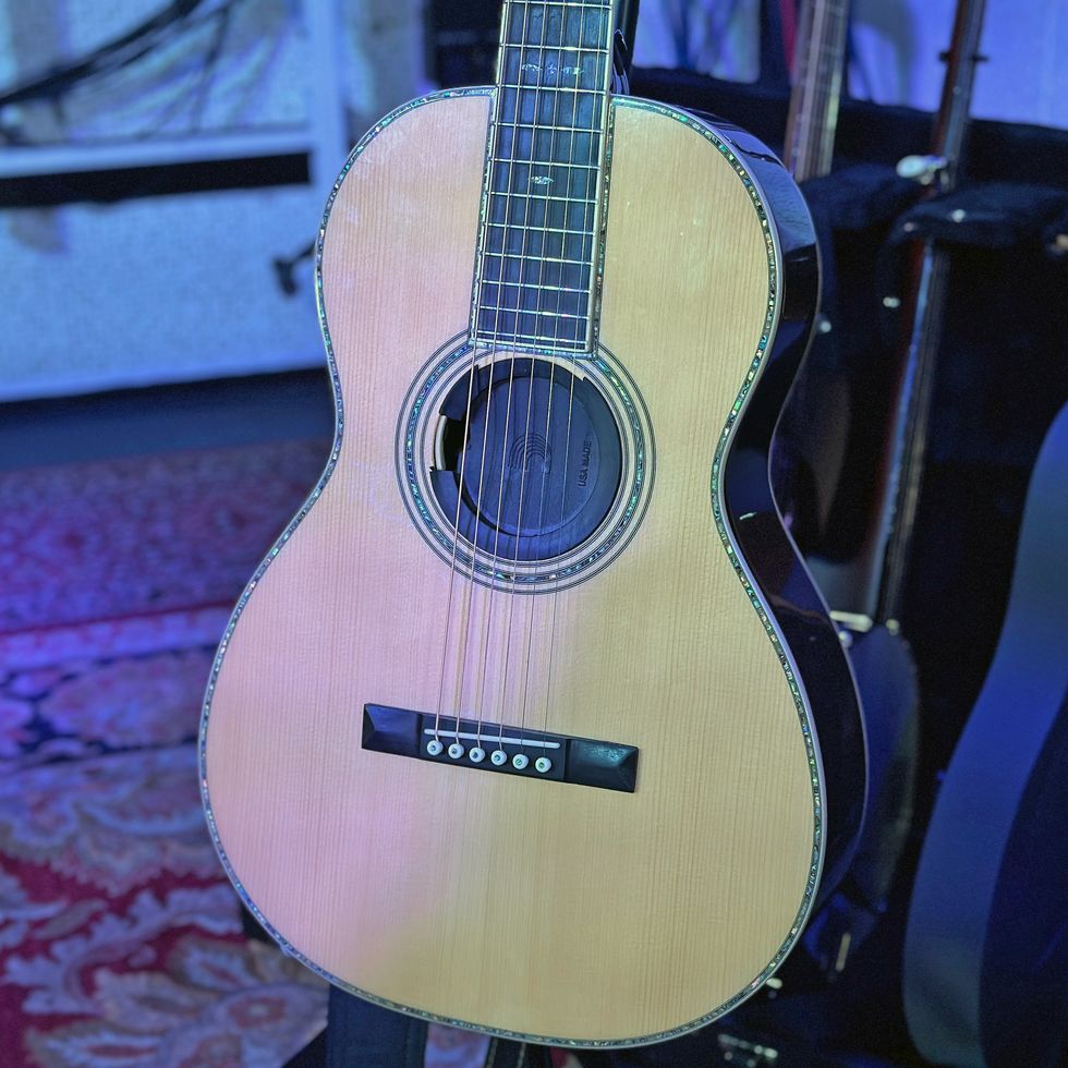 Nichols jokingly describes his pedalboard as "very confusing,” but, running through his chain, he starts at a TC Electronic PolyTune to an Origin Effects Cali76 compressor—"and after that’s where it gets pretty weird.” But also onboard, for drive, are a Wampler Tumnus and Belle, and a Fuzzlord Octave Master (“for my Jimi Hendrix kind of tones”). To control various effects and chains, there’s a Boss GT-1000 Core. Those are involved in the guitar-to-amp signal, versus the acoustic.