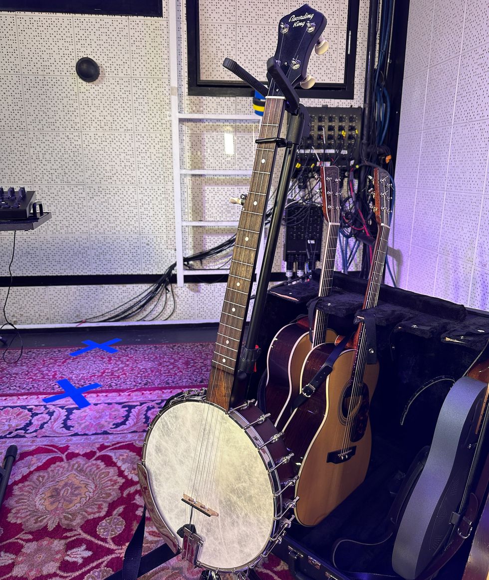 The banjo is one of the oldest African-American instruments, and this one is a Recording King, with a scooped fretboard and two pickups (a K&K and a Fishman) that he sometimes uses to split the signal. Without a resonating back, Nichols notes that it caters more to old-school music, with its bright, ringing tone.