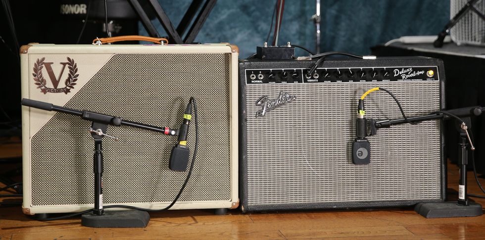 Victory has helped Buck out on his American run by hooking him up with V40 Deluxe combos where they can. In Nashville, Buck ran the V40 in a dual-mono setup with a Fender Deluxe Reverb, which had been modded and loaned by Mythos Pedals’ Zach Broyles. The first channel emulates a Bassman sound, while channel two is classic Deluxe Reverb.