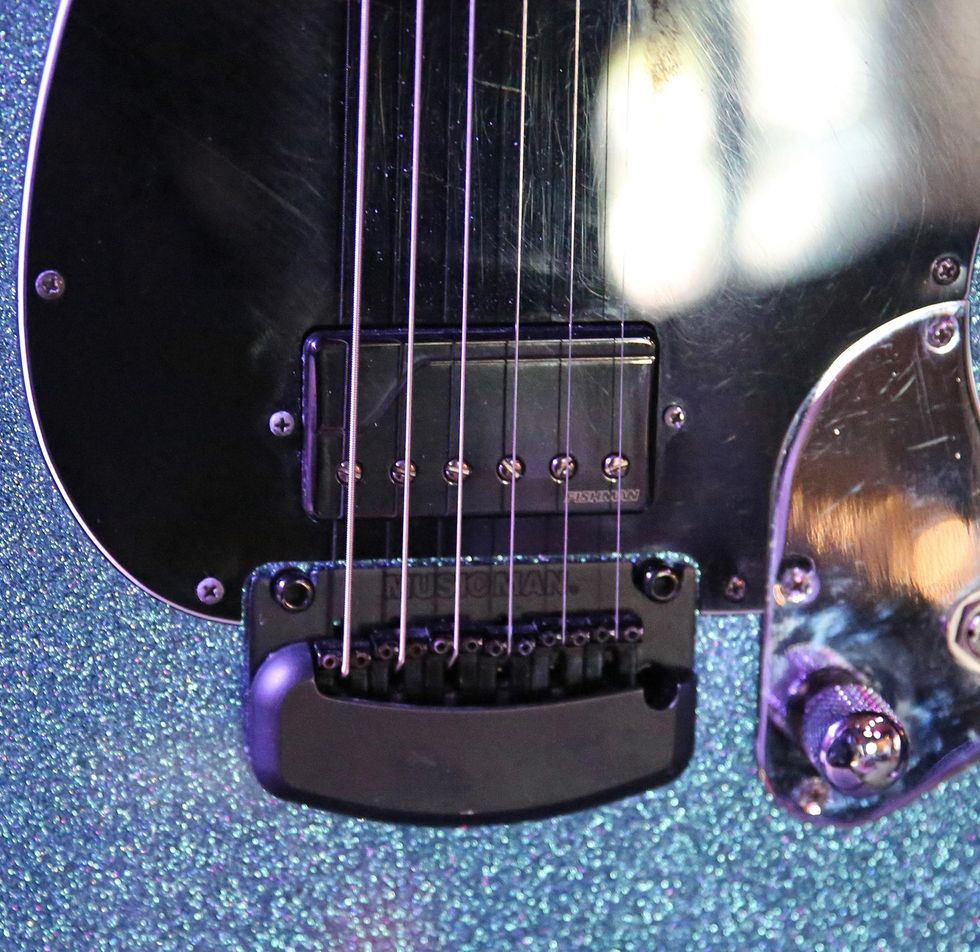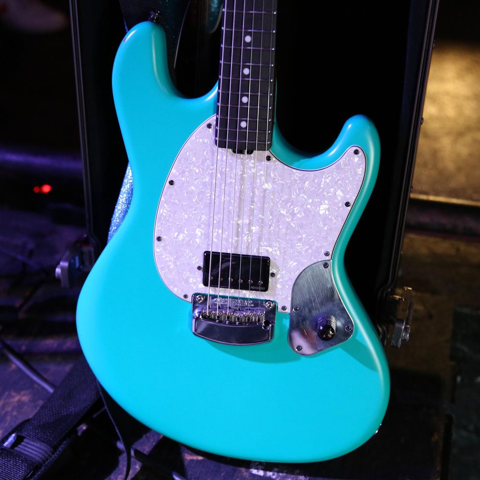 Now, while Jerry Cantrell never played a baby-blue guitar or a StingRay, Bruce says this one-pickup, one-knob mosh machine is a slight nod to the simple, sawtooth G&L Rampage favored by the Alice in Chains ripper. The lone pickup is Fluff’s signature Fishman Fluence. He mentions in the Rundown this StingRay has a considerably larger neck profile than the previous bass-boat sparkle StingRay. Both guitars we’ve seen so far stay in drop C# and take Ernie Ball Paradigm Beefy Slinky strings (.011–.054).