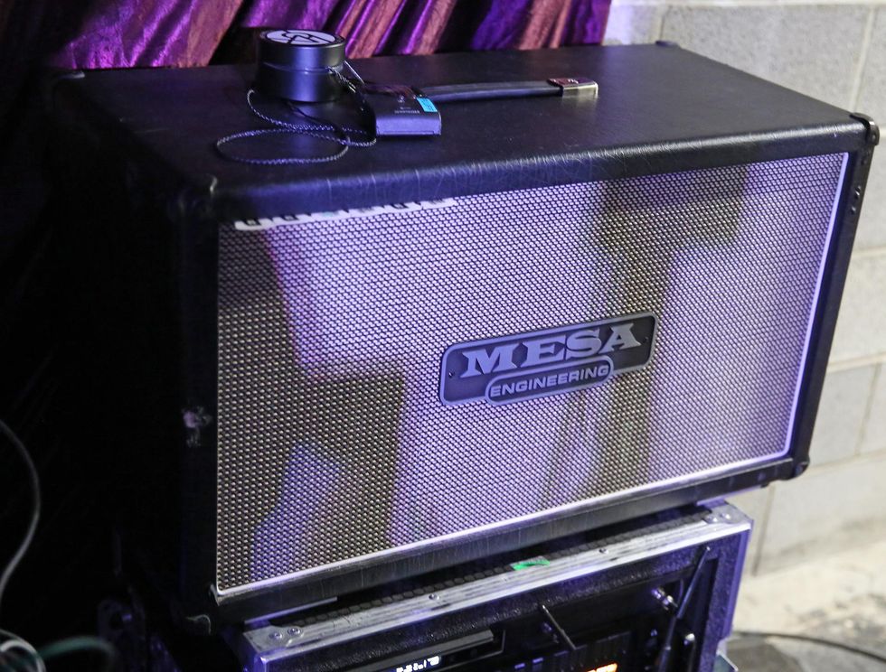The Axe-Fx III runs into this stereo Mesa/Boogie Horizontal Rectifier 2x12 that has a pair of Celestion Vintage 30s.