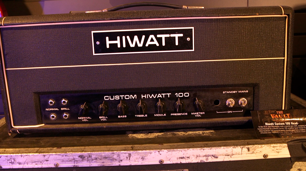 This Hiwatt Custom 100 and non-master-volume 1959 Marshall Super Lead head were also key components of Rossington’s sound.