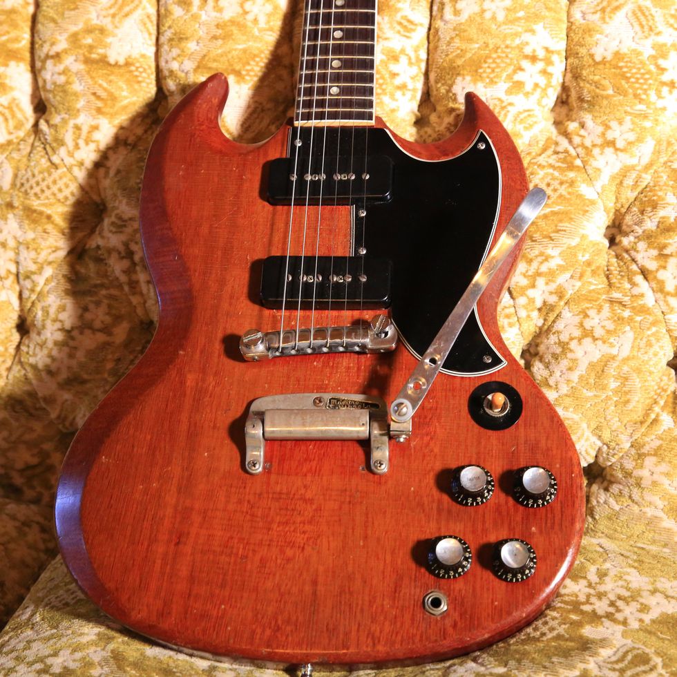 Bowers’ number one is her mostly stock 1961 Gibson SG Special. The P90s and the skinny neck are a perfect fit for her style. The tuners were changed at some point, and the whammy is no longer attached, but the rest of the axe is original. This guitar and all others are strung with D’Addario .010s.