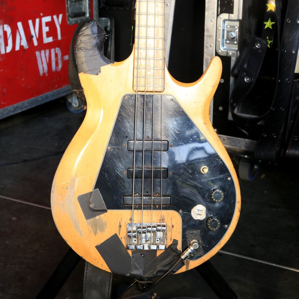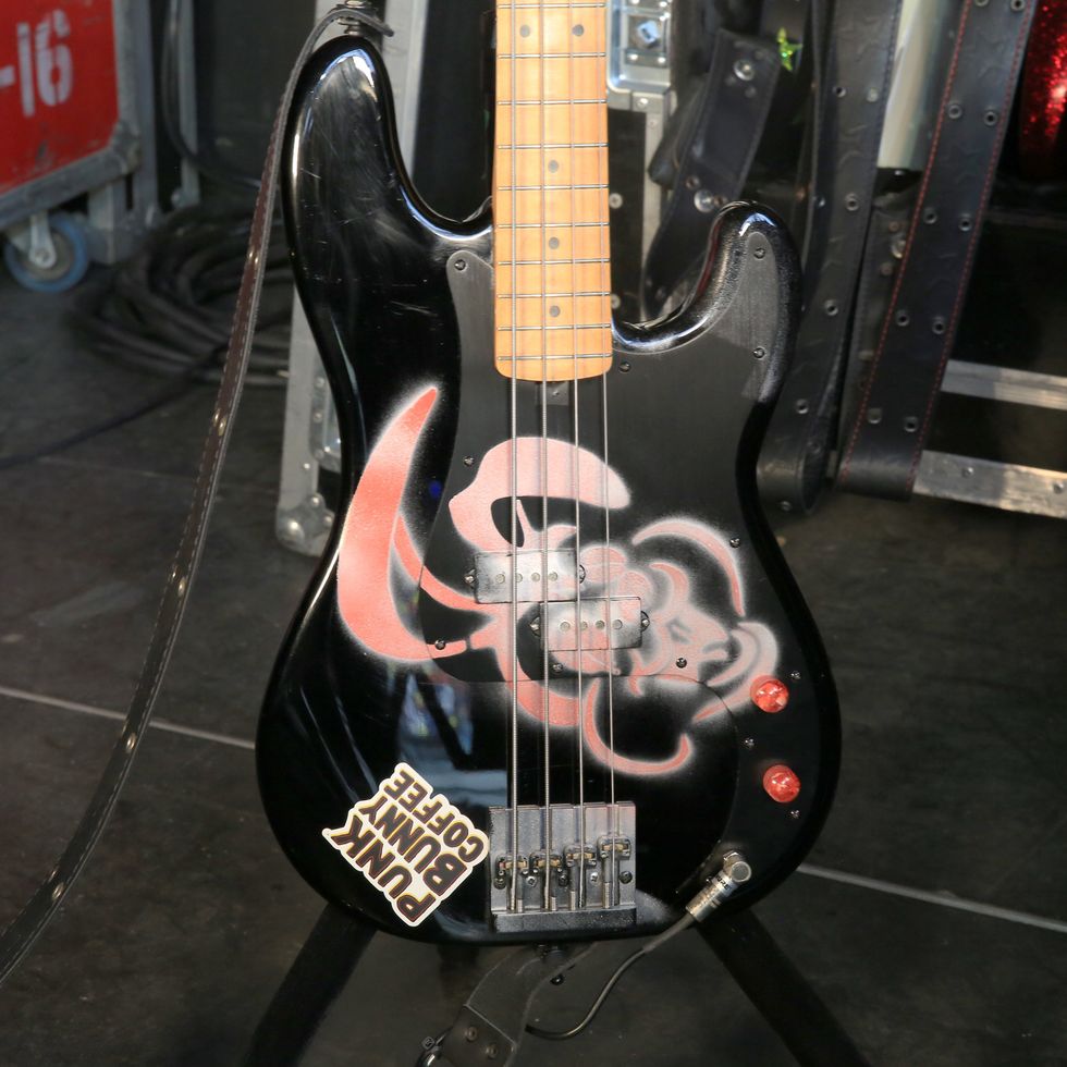 This Fender parts-project bass got a special makeover, this time featuring the logo from Green Day’s own Punk Bunny Coffee. This sleek, hyper 4-string has a roadworn ’50s-style neck, Hipshot KickAss bridge, and Hipshot tuners to drop to C-sharp for “Dilemma” off Saviors, then to jump back up to E-flat for fan-favorite “Minority.”