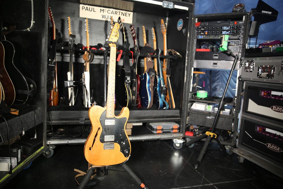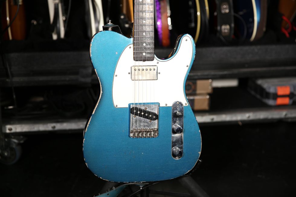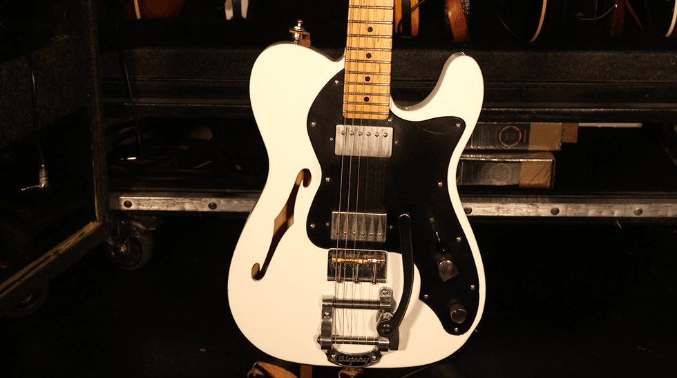 This thinline Telecaster serves as a loyal backup, with the same Lindy Fralins that are in his number-one, plus a Bigsby system.