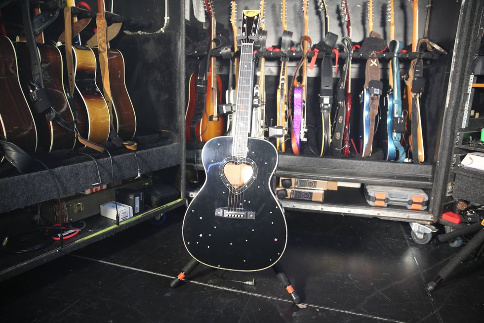 This custom-built acoustic was brainstormed by Nancy and the folks at Martin as a signature gift for her sister, Ann. Adorned with interstellar artwork, it’s one of only two ever made—one for each sister. All of Nancy’s acoustics use Go Acoustic pickups.