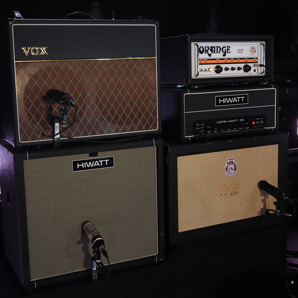 Bowen’s signal is blasted out via a trio of amplifiers: a Vox AC30, Orange AD200B MKIII, and a Hiwatt Custom 100. A Hiwatt and Orange cabinet duo lend different textures to the soundwaves.