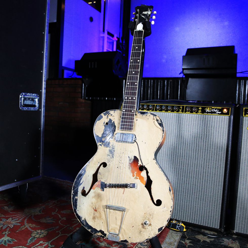 According to Mancini, White has had this vintage Kay Archtop since he was 20 years old—he shares its origin story in the 2008 documentary It Might Get Loud. With 25 years of service to one of rock’s most heavy-handed guitarists, it’s been through the ringer. Mancini has executed fix-ups over the years as needed, including a binding patch he whipped up at BBC’s Maida Vale studios using old console knobs.