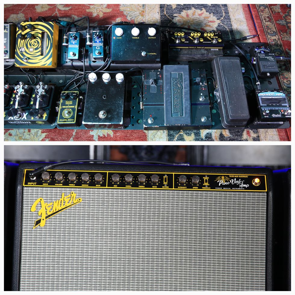 Currently, White has three Pano Verbs onstage, and runs one amp at a time: The center-stage amp for his electric, the stage-right one for his Kay, and the stage-left box as a backup.