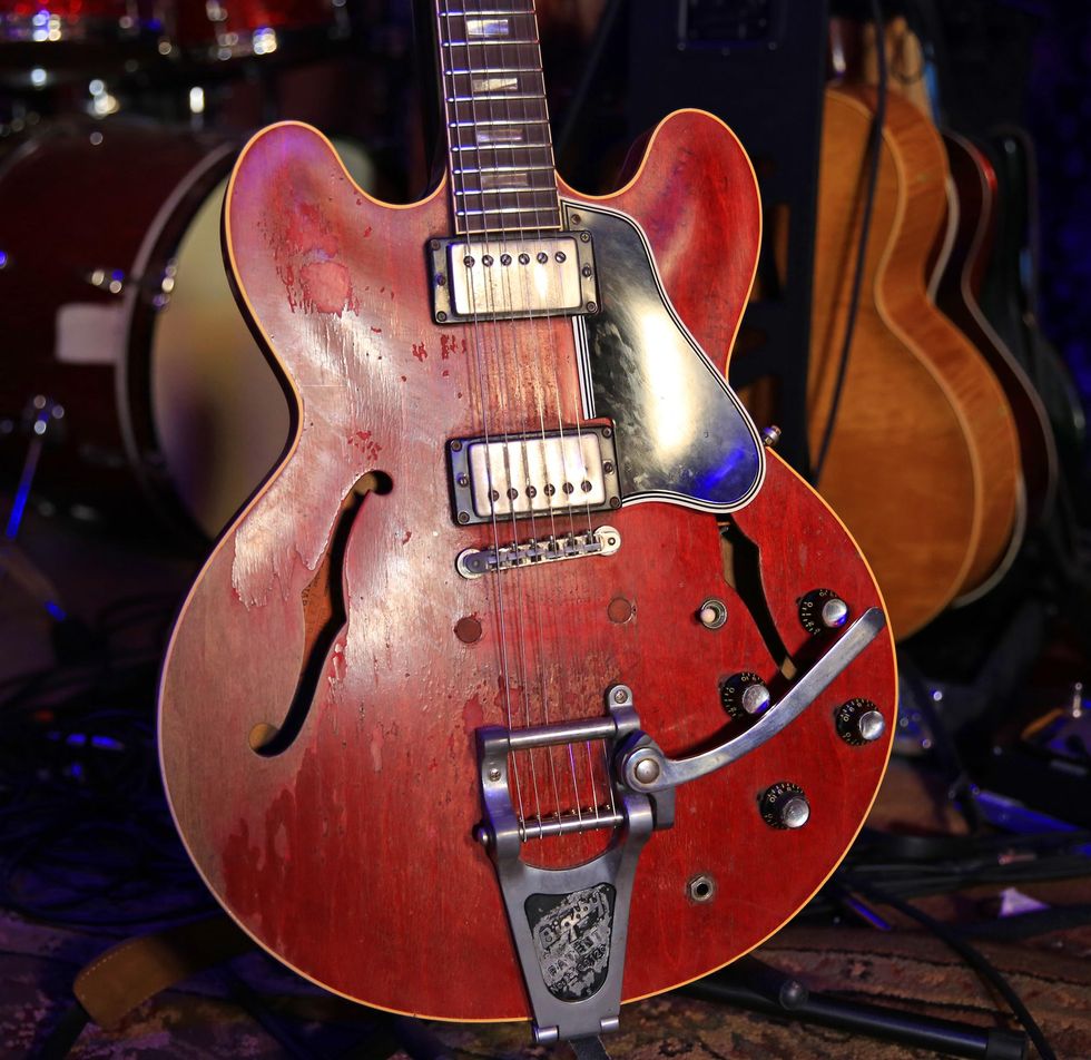 Here’s an all-stock 1952 Gibson ES-5 in standard tuning and strung with flatwound .012—.056 strings, for vintage tone. This model debuted in 1949 as an electric version of Gibson’s then-popular acoustic L-5.