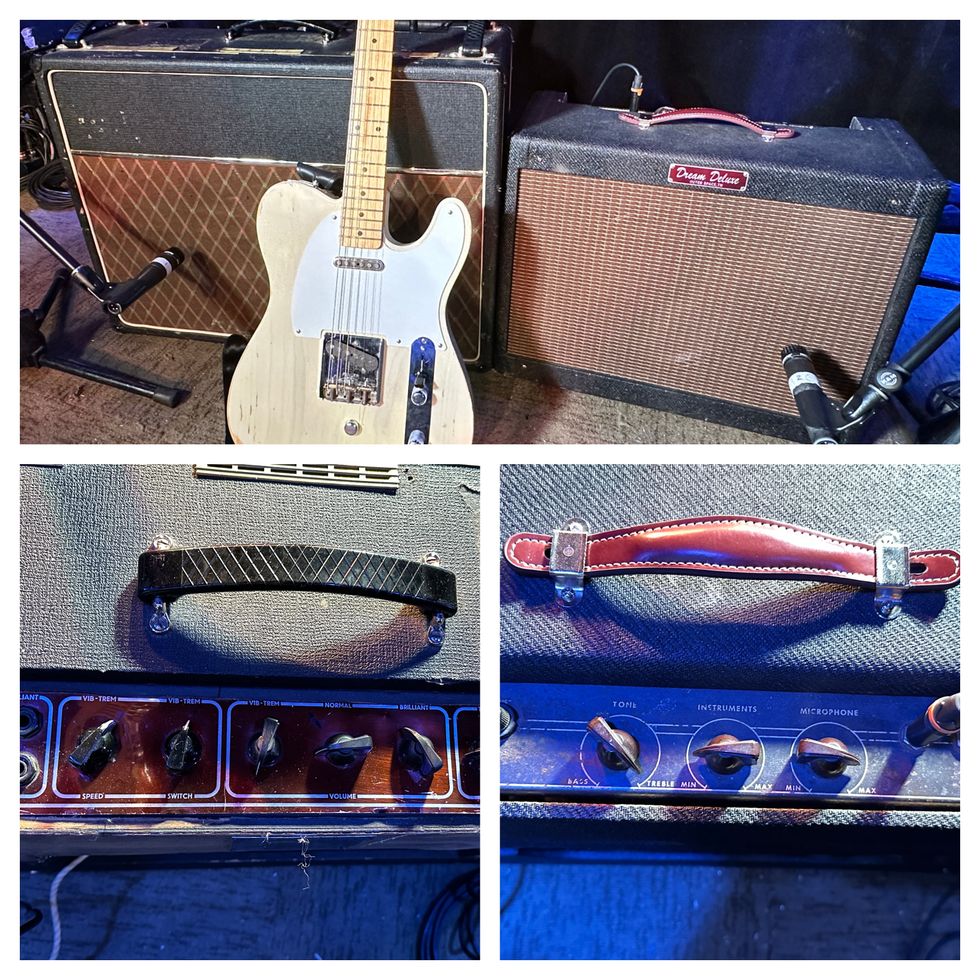 Hughes uses two amps combined, in a non-stereo setup. Amp number one is his 1952 Gibson GA-20, which has been rehoused in a Tweed Deluxe cab with a Celestion G12-65.