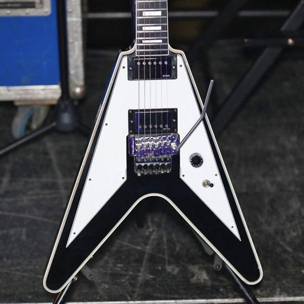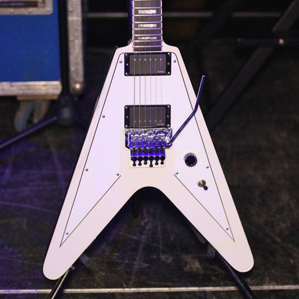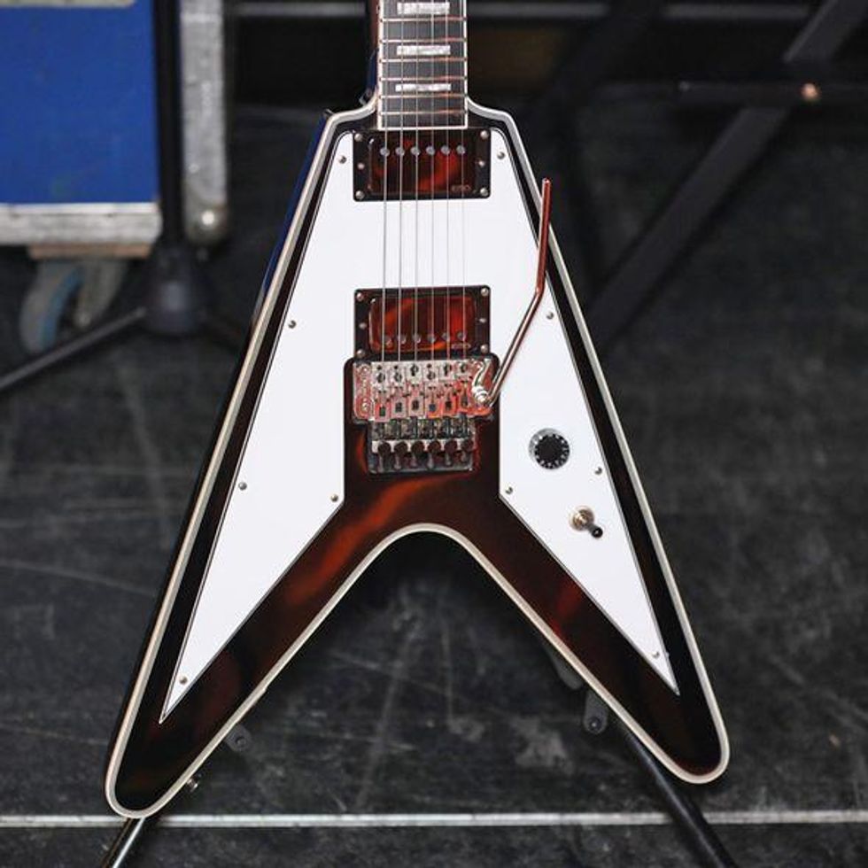 This 1976 Gibson Les Paul Custom originally sported a black finish, but Richie Faulkner had Gibson refinish it in white when he started with Priest. This model keeps the mahogany body as his other axes but uses EMG 81/85 pickups.