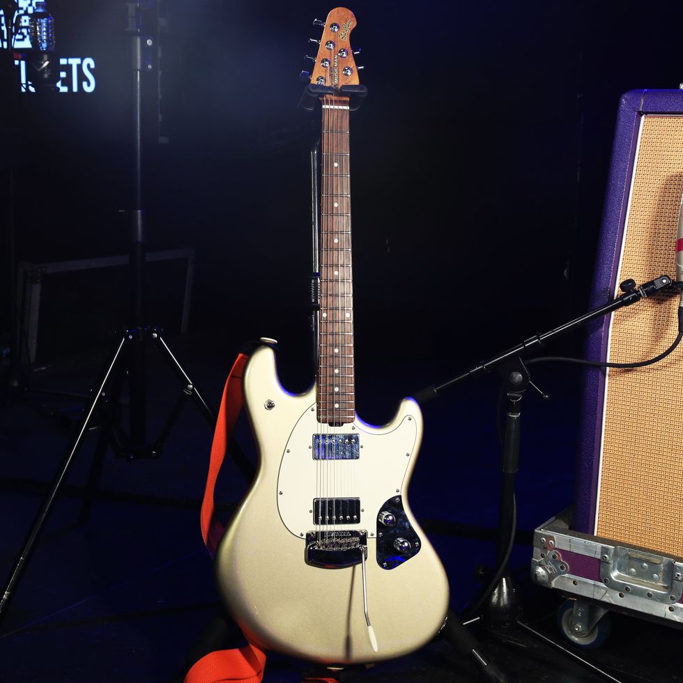 Iero loves this Ernie Ball Music Man StingRay RS for its stellar trem system and rock-solid tuning. He can reef on the whammy bar as hard as he wants, and it stays on pitch. (He even thought he broke it one night after hearing a loud “pop,” but his tech couldn’t find any issues.) It’s always in standard tuning, with Ernie Ball Burly Slinky strings.