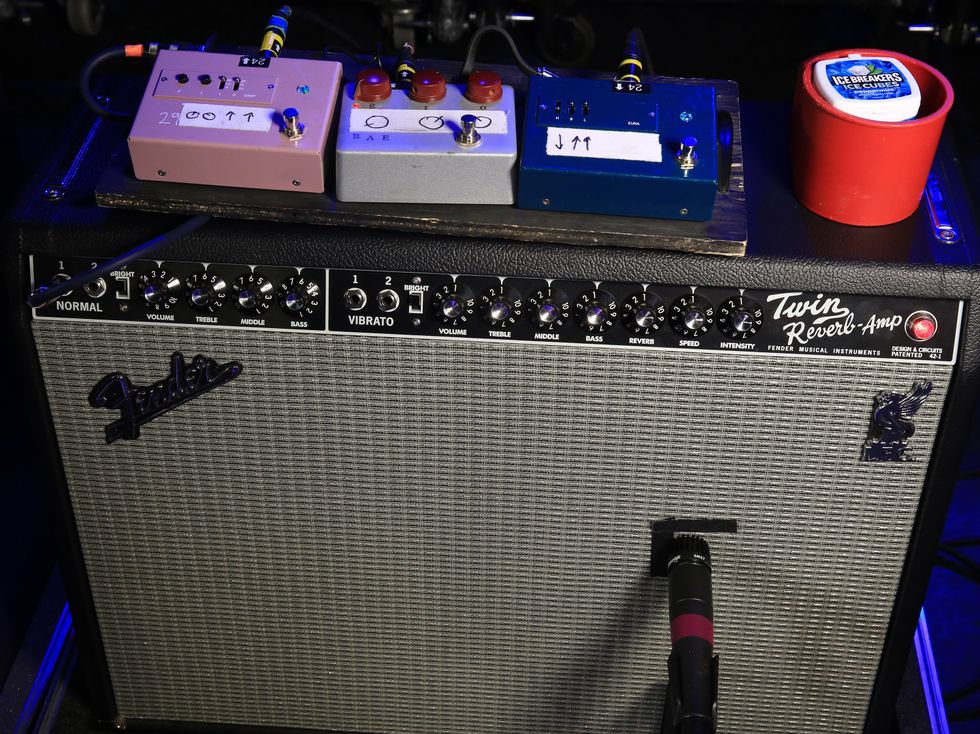 Out on the road, the post-hardcore supergroup’s gunslinger works in pairs, with two guitars, two pedalboards, and a Twin.