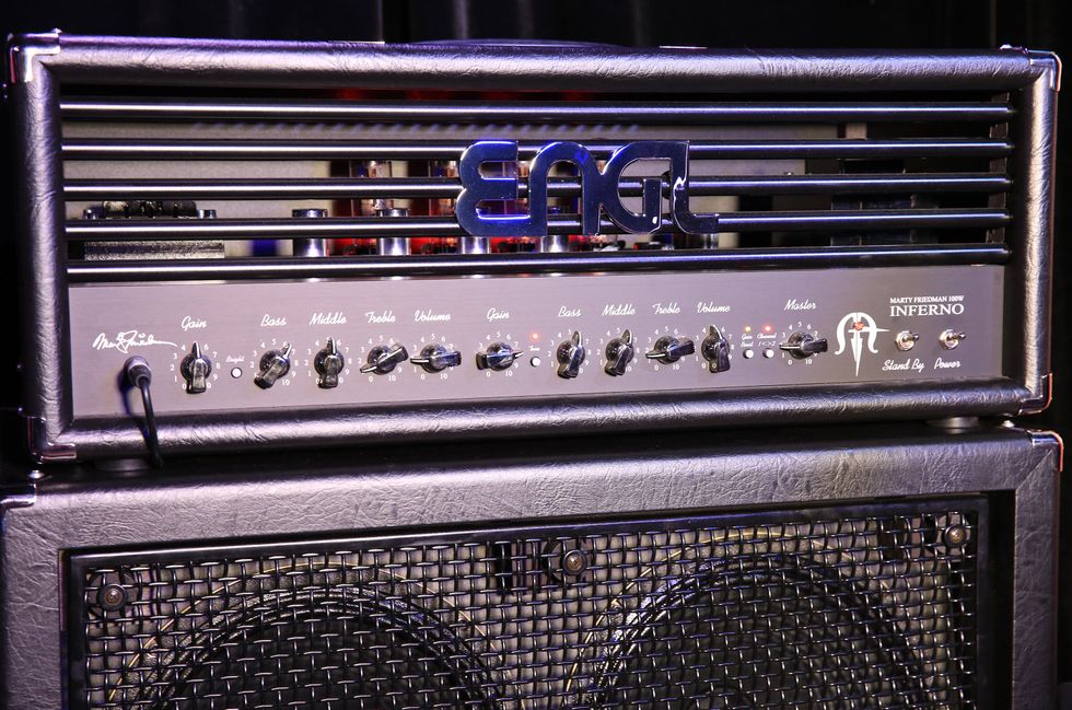 Another signature piece, this ENGL Marty Friedman INFERNO Signature E766 is a 100-watt firebreather that Friedman designed with the German amp makers. Friedman says they started from the company’s Steve Morse signature amplifier, then pared back the elements he didn’t use, resulting in a cheaper but still incredibly powerful product.