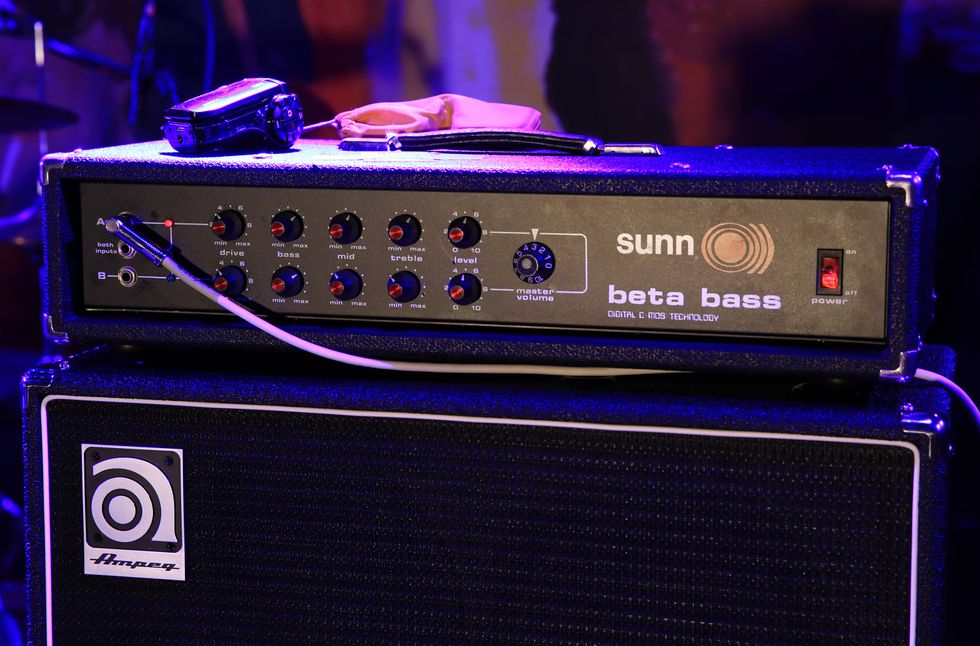 George runs through a Sunn Beta Bass head into an Ampeg SVT810E cabinet.
