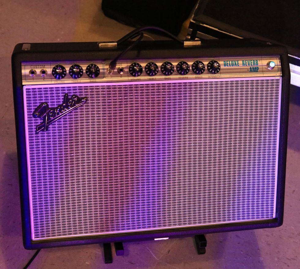 Jaime uses a reissue 1968 Fender Custom Deluxe Reverb amp modified with a Celestion Cream alnico 12". His summary: “It sings!”