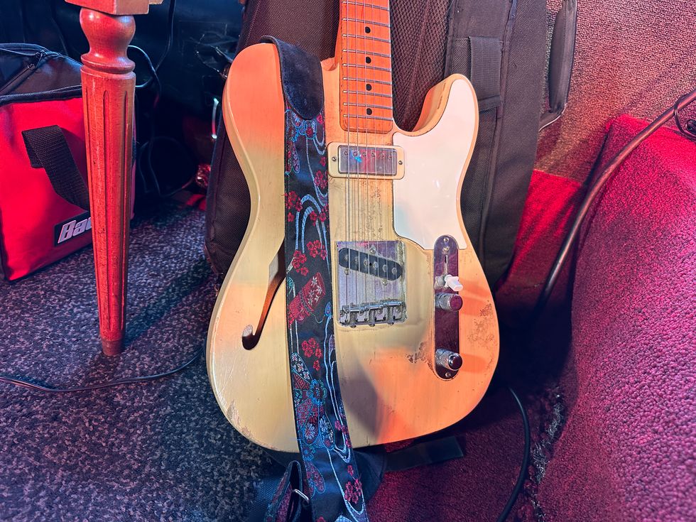 Luke McQueary plays a Fender Custom Shop Thinline Telecaster. It features a Fralin Blues Special in the bridge and a Seymour Duncan Brent Mason Signature in the neck. Luke uses Jaykco guitar straps, a Snark tuner, String Joy and Dunlop strings, and Fred Kelly thumb picks.