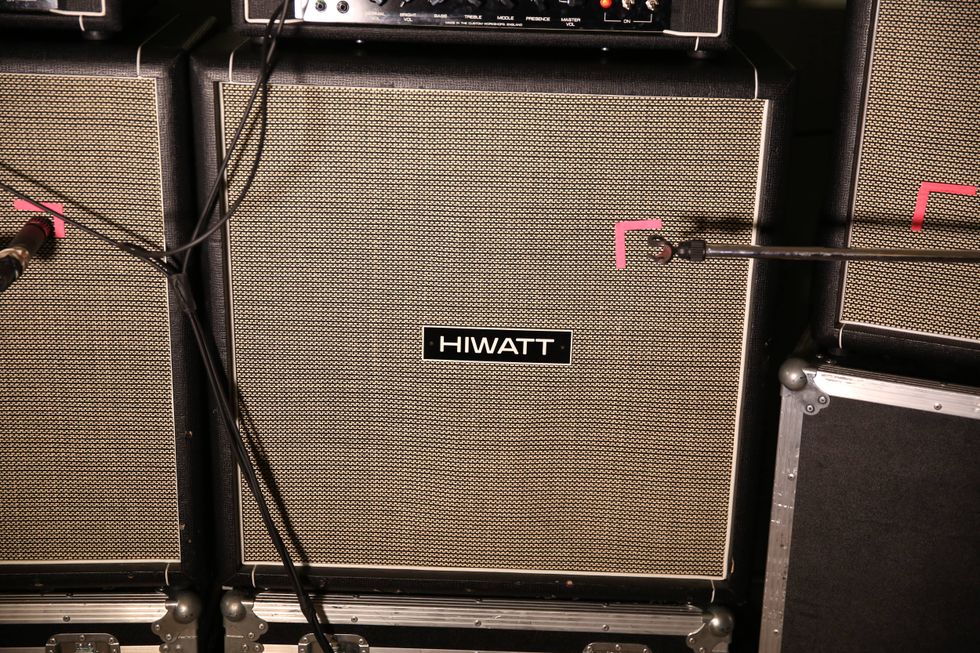 Sullivan was turned onto Hiwatts after acquiring some on loan in the wake of the gear theft, and he hasn’t turned back since. The cabinets are loaded with Hiwatt Octapulse speakers.