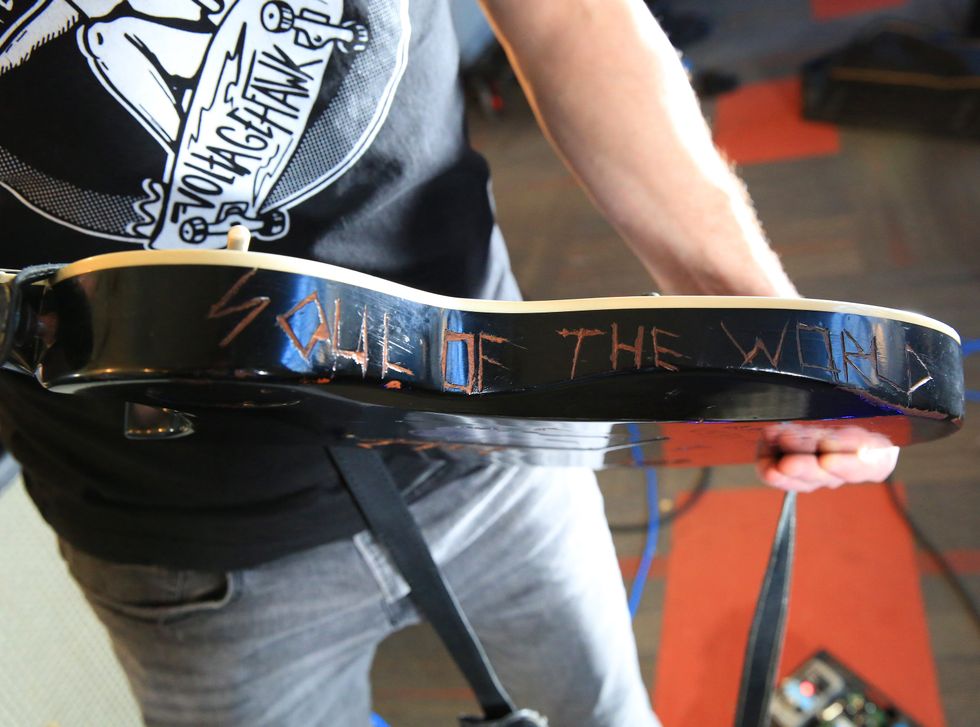 On the top side of his Les Paul, he etched in an inspirational reminder.