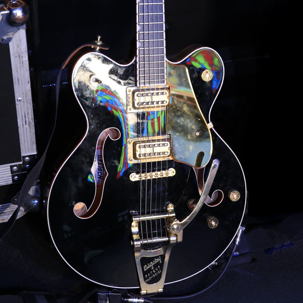 Trent’s not a guitar snob: Generally speaking, he plays whatever he can get his hands on. While playing Eddie Vedder’s Ohana Fest, someone loaned him this Gretsch Black Falcon, and he fell in love with it. He likes its size compared to the broader White Falcon. It’s also the band’s only electric, so if it goes down, it’s back to acoustic. Hearst takes turns on it, too.