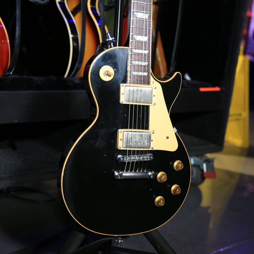 Slash’s black 1986 Gibson Les Paul Standard rocks a set of his signature Duncan pickups. Other than that, it’s what you’d expect. “It’s a Standard, so you can find the specs anywhere,” says Bergman. “One of the main things he looks for in a guitar is the neck. If he likes the neck, that’s a big plus.”