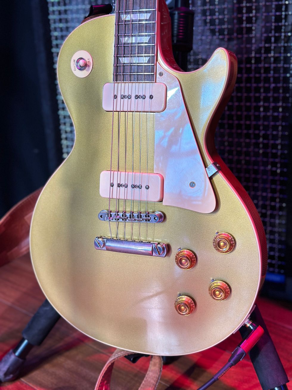 “I’ll play anything with six strings,” explains Neal, “but not everything is going to inspire stuff.” Tash tours with just two guitars. Both are completely stock, and both feature P-90 pickups. His go-to is this Gibson 1956 Les Paul Goldtop Reissue.